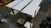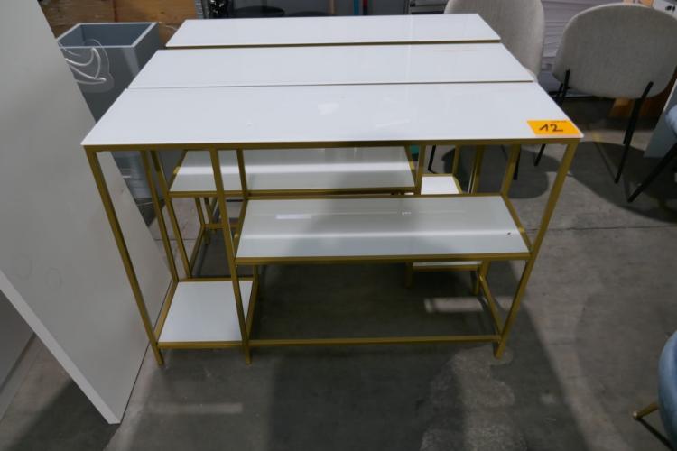 3 goudkleurige wandtafels glazen bladen melkglas