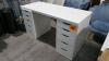 Houten receptiebalie witte kleur + bureautafel met 2 ladenblokken witte kleur