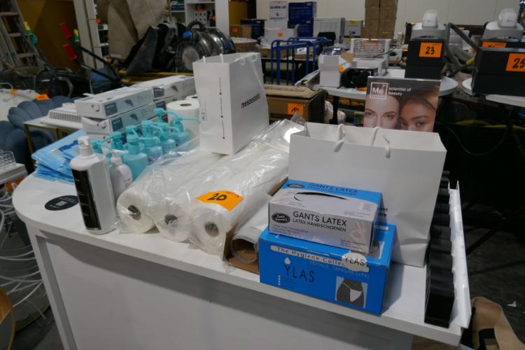 Dozen latex handschoenen - papierdoekjes - desinfecterende gel - rollen papier - gezichtscreme's - reclame - enz….