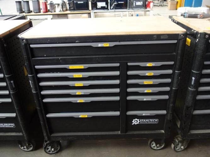 Gevuld met divers handgereedschap, vv. 13 lades, (slot verwijderd)