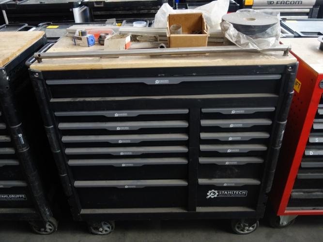 Gevuld met divers handgereedschap, vv. 13 lades, (slot verwijderd)