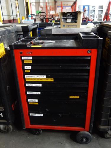 Gevuld met divers handgereedschap, vv. 7 lades, (slot verwijderd)