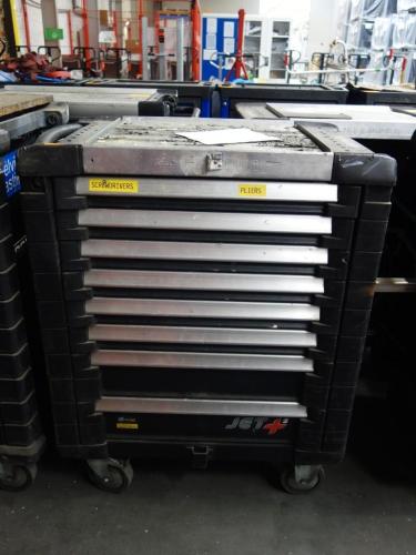 Gevuld met divers handgereeschap, vv. 8 lades, (slot verwijderd)