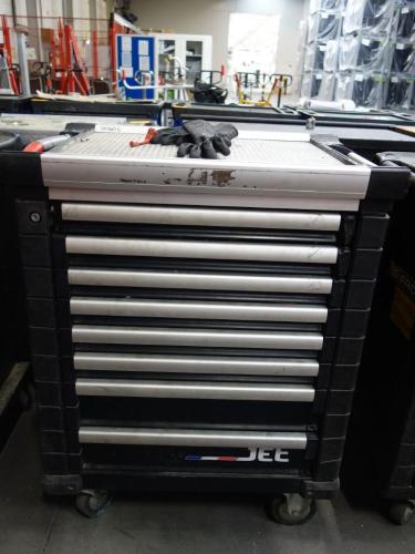 Gevuld met divers handgereeschap, vv. 8 lades, (slot verwijderd)