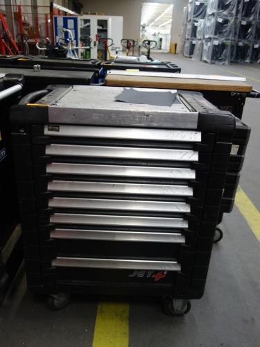 Gevuld met divers handgereeschap, vv. 8 lades, (slot verwijderd)