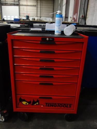 Gevuld met divers handgereedschap, vv. 7 lades, (slot verwijderd)