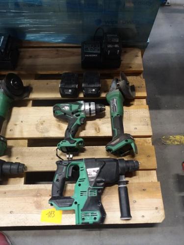 haakse slijper, klopboormachine en boormachine, vv 3x accu en lader