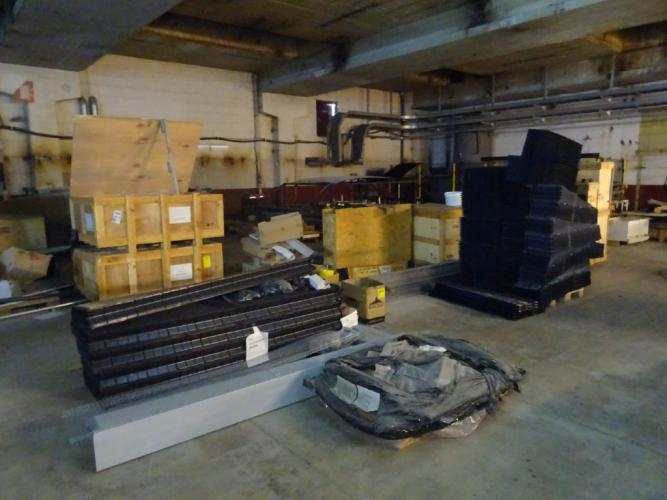 oa spareparts, metalen kasten, werktafel, bureau, bureaustoelen, divers ijzer/alu, ... (alles moet mee), goederenlift aanwezig, exclusief lot 716/718/719/720