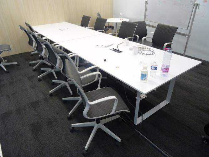 vv : 2x tafel (2200x1200x750) , 13 stoelen , notitiebord , ronde tafel,......