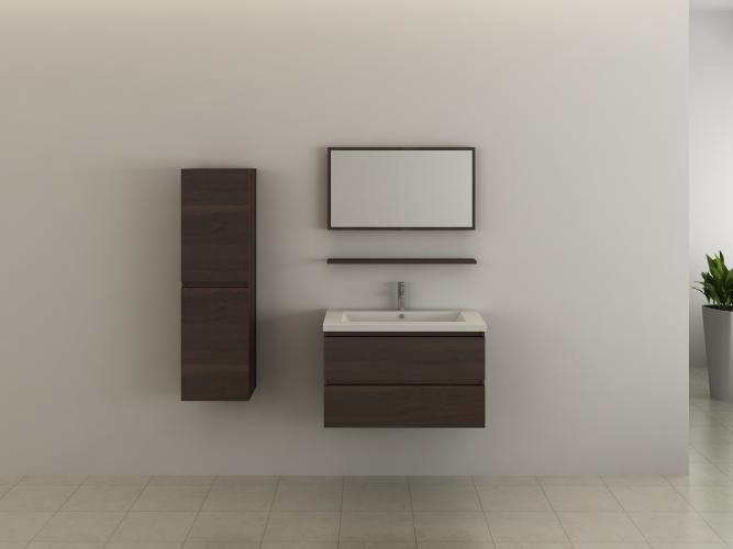Compleet 4-delig badkamermeubel (80cm) - Donkerbruin hout decor - Incl. kranen