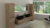 Model:2-persoons badkamermeubel 180 cm - licht hout decor met zijkasten en zwarte waskommen