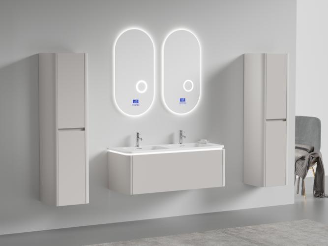 Badkamermeubel 2 persoons 120 cm - Taupe - 2 zijkasten, 2 ovale spiegels