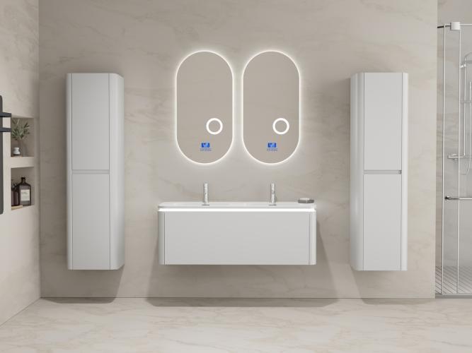 Badkamermeubel 2 persoons 120 cm - Wit - 2 zijkasten, 2 ovale spiegels