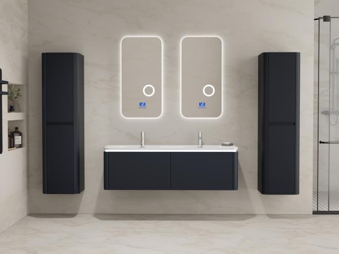 Voorzien van:LED verlichting in onderkast - 2 kranen inclusief pop-up afvoer – 2 lades - Softclose lade systeem – 2 LED spiegels met anti-fog systeem - Voorgemonteerde zijkasten en wastafelmeubel