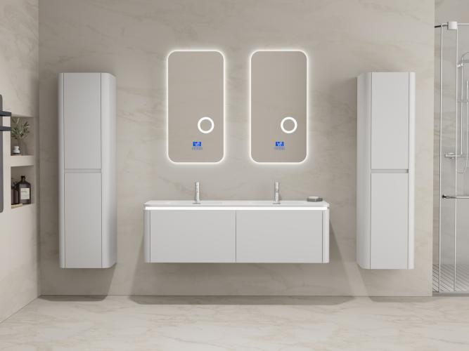 Voorzien van:LED verlichting in onderkast - 2 kranen inclusief pop-up afvoer – 2 lades - Softclose lade systeem – 2 LED spiegels met anti-fog systeem - Voorgemonteerde zijkasten en wastafelmeubel
