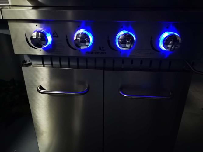 Voorzien van:4 Hoofdbranders, 1 zijbrander - Wasbak met kraan - Gietijzeren roosters met warmhoudrek en leklade - LED verlichting - Elektrische ontsteking - Deksel voorzien van thermometer - Verrijdbaar.