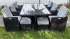 Diningset 11 delig - Zwart wicker + lichtgrijze kussens