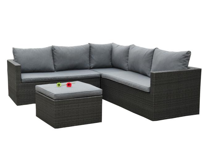 Loungeset 4-delig - hoek - Antraciet wicker + grijze kussens - Weerbestendig vlechtwerk