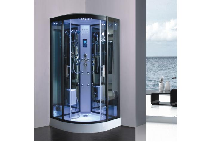 Stoomcabine halfrond - wit bad met zwarte cabine - 90x90x215 cm