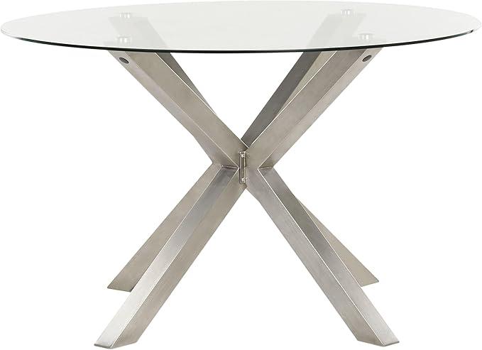 Ongebruikt, volledig, ok, Beliani Moderne tuintafel roestvrijstaal ⌀ 120 cm aluminium poten transparant glas tafelblad zilver Maletto, B0DVZRMT7T