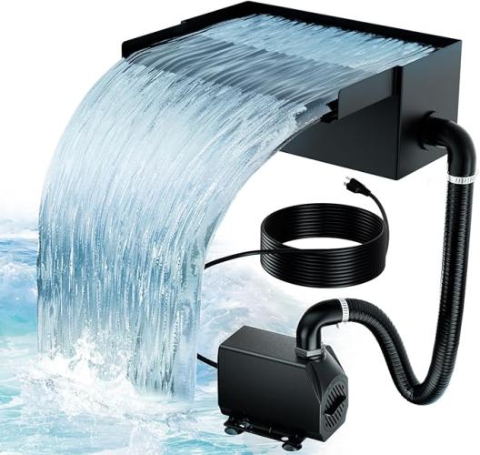 Gebruikssporen, getest en werkend, volledig, ok, Biling Vijver waterval bladenset, 20 cm roestvrijstalen overloop zwembadfontein met 660 GPH pomp en duurzame buis voor vijver, zwembad, beekloop, tuin, terrasdecoratie, B0DMR5R7W4