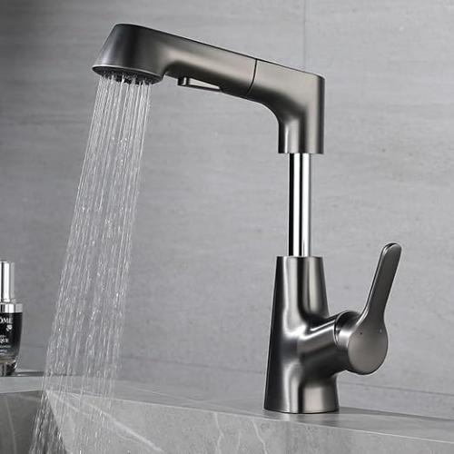Ongebruikt, volledig, ok, Liropau Keukenkraan met pull-down sproeier, enkele handgreep hoge boog matzwarte uittrekbare keukenkraan, aanrecht kraan twee waterdoseermodi met 60 cm uittrekbare slang, B0CRRF1SC7