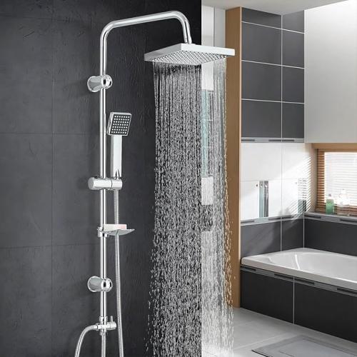 Ongebruikt, volledig, ok, beschadigde verpakking, Hevenaov Douchekolom zonder kraan, douche voor badkamers, hydromassagezuil, doucheset, chroom, vierkant, eengreepsmengkraan van roestvrij staal, vierkante doucheset, 20 x 20 cm, B0F18GD8DH