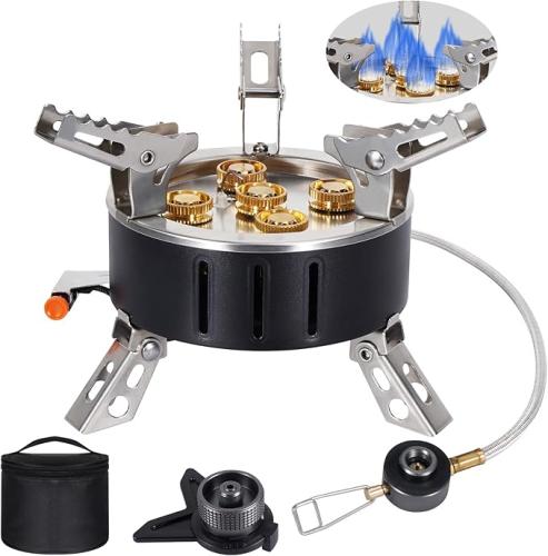 Ongeopend, ok, LAMA Campingfornuis, 11000 W, piëzo-ontsteking, geschikt voor alle gaspatronen, gasbrander, winddicht, compact, duurzaam, draagbaar met opbergkoffer voor picknick, trektocht en buitenactiviteiten, B0CYLJFWQR
