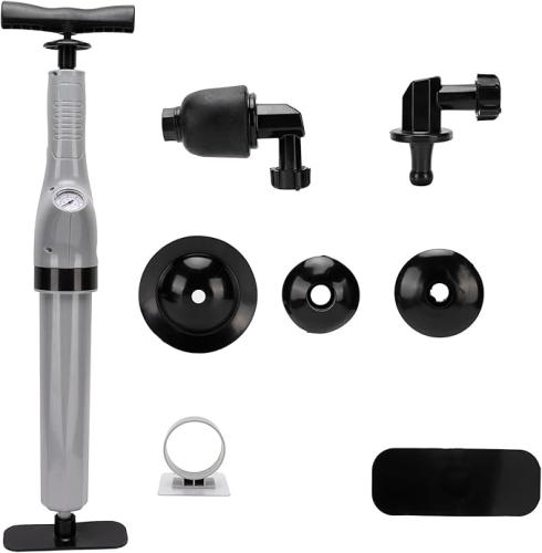 Ongeopend, ok, Toiletontstopper, 9-in-1 luchtdrukblazerset met realtime barometer, toiletontstoppingsgereedschap voor aanrecht (grijs), B0CLVLC9JX