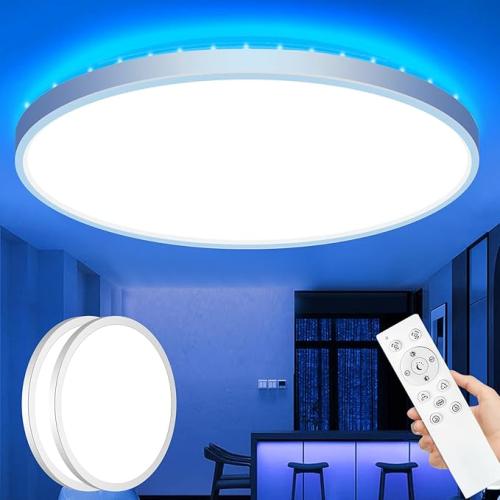 Ongebruikt, getest en werkend, volledig, ok, Zemty 39 cm LED plafondlamp dimbaar, 36 W 3600 LM RGB kleurveranderende plafondlamp 3000 K - 6500 K, IP54 waterdicht platte plafondlamp voor badkamer kinderkamer slaapkamer verpakking van 2, B0DX73M7VB