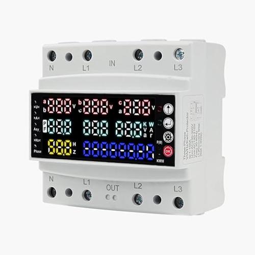 Ongeopend, ok, Stroommeter 3-fasen met overspanningsbeveiliging, driefasenspannings- en stroombalansbeveiliging/overspannings-/onderstroombeveiliging/nullastbeveiliging AC 230 V, B0DZHR6TBL