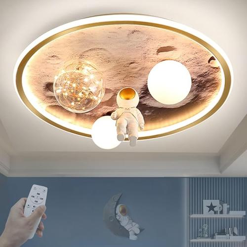 Ongebruikt, getest en werkend, ok, LED Kinder Plafondlamp Met Afstandsbediening, Dimbare Slaapkamer Lamp, Moderne Astronaut LED Voor Jeugdige Jongens en Meisjes, Ø50cm, 68W, B0B7Q16D8P