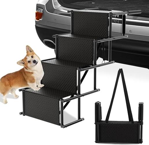Ongebruikt, ok, licht beschadigde verpakking, HEYOUTH Opvouwbare hondhelling, hondentrap met 4 treden, ladder voor grote honden, tot 80 kg, antislip oppervlak, voor alle voertuigen, B0DF2DN15Y
