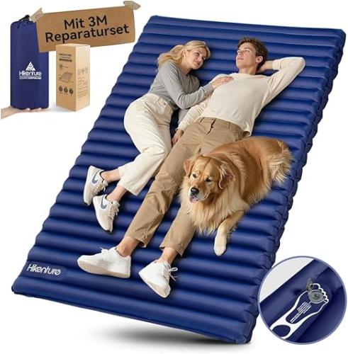 Minieme gebruikssporen, ok, originele verpakking ontbreekt, HIKENTURE Isomat voor 2 personen, ultralicht, dubbele isomat, opblaasbaar, campingluchtmatras, slaapmat, 140 cm, met voetpomp, voor kamperen, outdoor, wandelen, strand, marineblauw, B0CWNYL8GS