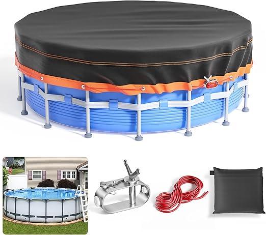Ongebruikt, ok, Ronde zwembadafdekking, zonneafdekking voor bovengrondse zwembaden, ingegraven zwembadafdekkingsbeschermer met trekkoord ontwerp verhoogt de stabiliteit, 442 x 20 x 0,01 cm, B0DSPGCYCM