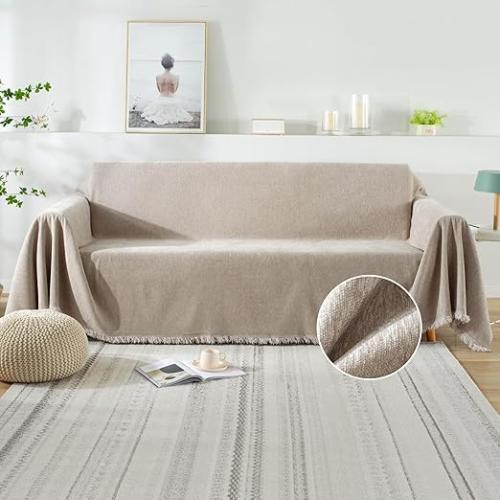 Ongeopend, in seal, Taotaogo Bankhoes 3-zits chenille-hoekbankhoes, wasbare L-vormige bankhoezen sectionele bankhoes met kwastjes, meubelbeschermer voor huisdier alle seizoenen C kaki 180 x 340 cm, B0DFVG1XX3