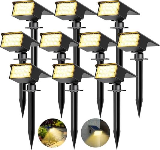 Gebruikssporen, getest en werkend, Kolpop 10 stuks / 77 LED buitenlampen op zonne-energie 3000K warm wit, waterdicht IP65, 1800 LM, geschikt voor terras, zwembad, bloempotten, vloer, oprit, patio, B0F38D1K82