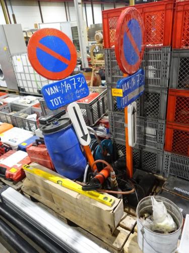 oa: verkeersborden, sleutels, werkmateriaal, waterpas...