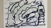 Getekend en gemaakt door de door Alechinsky op een manuscript van Marcel Moreau.