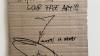 Ingekaderd karton dat waarschijnlijk uit het park komt van Dismaland (in 2015).