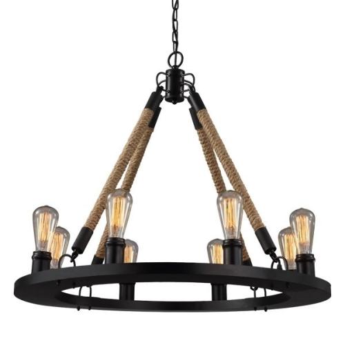 Ronde luchter met touwen en zwart staal-metaal. Geschikt voor 8 lampen. EXCLUSIEF LAMPEN