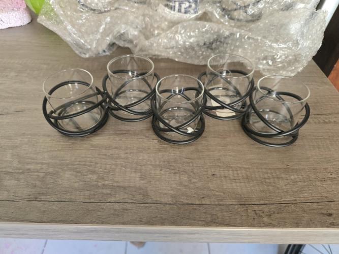 Nieuw - metal met 5 glaasjes - 35cm breed - 3 stuks