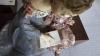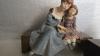Brocante: 2x beeld hars op houten sokkel