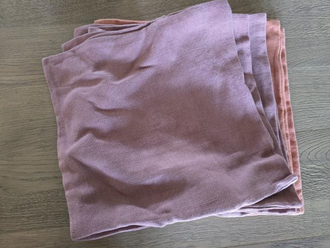 9x kussensloop in stof 45x45cm (4x paars, 5x roze)