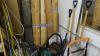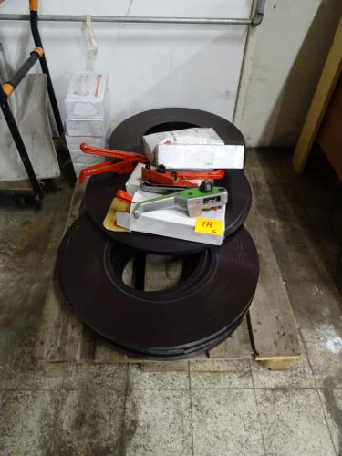 oa inhoud rek, metalen binding, bindtoestellen, werkkoffers, schoppen, transportkar, verlengkabel op haspel, ... (houten rek werktafel mogen mee)