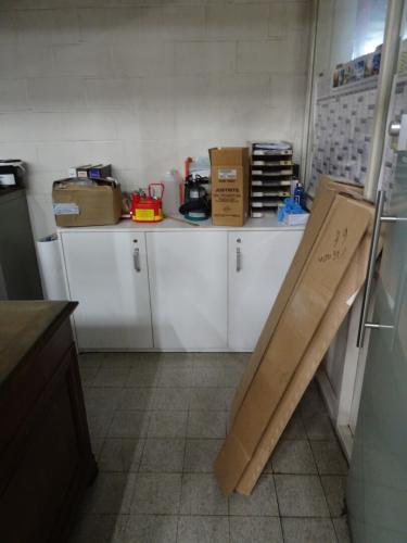oa. printer, bureaus, bureaustoelen, dossierkast, labelprinter, computer, ... (alles moet mee)