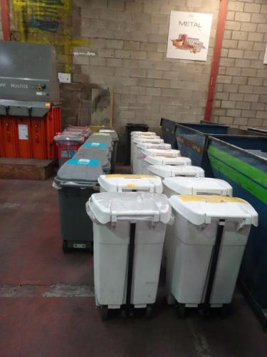 Partij diverse verrijdbare vuilnisbakken