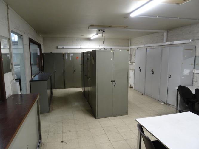 metalen lockers met inhoud, tafels, stoelen, metalen bureau, ... (alles moet mee)