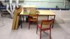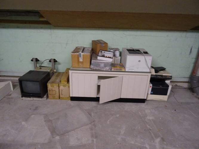 stoelen, vergadertafel, houten kast, metalen kasten, ... (op eerste verdiep)