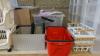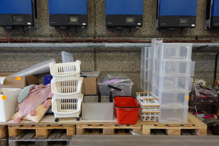 oa: plastieken bakken , kussens, deken , winkelmand ,....